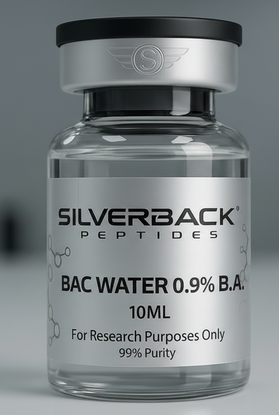 Silverback Peptides provides premium-grade research peptides, lab reagents, and scientific materials for controlled laboratory use. Optimised for peptide research applications, assay development, and academic study. Bacteriostatic Water (BAC Water) is a sterile, non-pyrogenic solution designed for safe and effective reconstitution of peptides and other injectable compounds. Formulated with 0.9% benzyl alcohol to inhibit bacterial growth, it allows for multiple withdrawals from the same vial without compromising purity or stability.